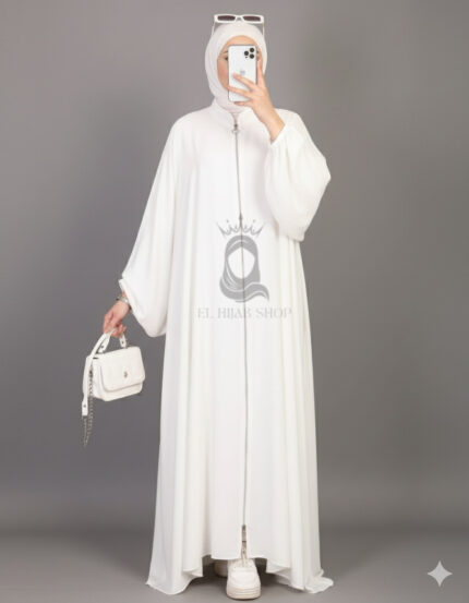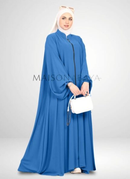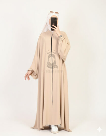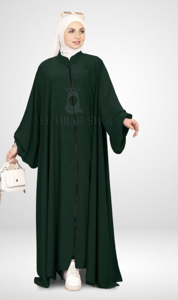 Abaya ample avec une longueur de corps et demi-col, taille qui convient à tous, avec matière Crepe Rosa, excellent type, légère et douce.